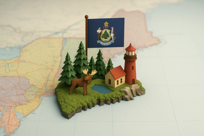 ایالت مین، واقع در شمال شرقی ایالات متحده و معروف به «ایالت درخت کاج»، مقصدی با ویژگی‌های منحصربه‌فرد برای مهاجرانی است که به دنبال یک سبک زندگی متفاوت هستند. این ایالت با خط ساحلی ناهموار و طولانی به طول بیش از ۵,۰۰۰ کیلومتر، دریاچه‌های متعدد و بیش از ۹۰٪ پوشش جنگلی، از نظر جغرافیایی بسیار متمایز است. در کنار این زیبایی‌های طبیعی، ایالت مین دارای بافت جمعیتی خاصی است؛ این ایالت پیرترین جمعیت را در کل آمریکا دارد که با نرخ زاد و ولد پایین و افزایش سن نیروی کار، با چالش‌های اقتصادی و جمعیتی روبرو است.